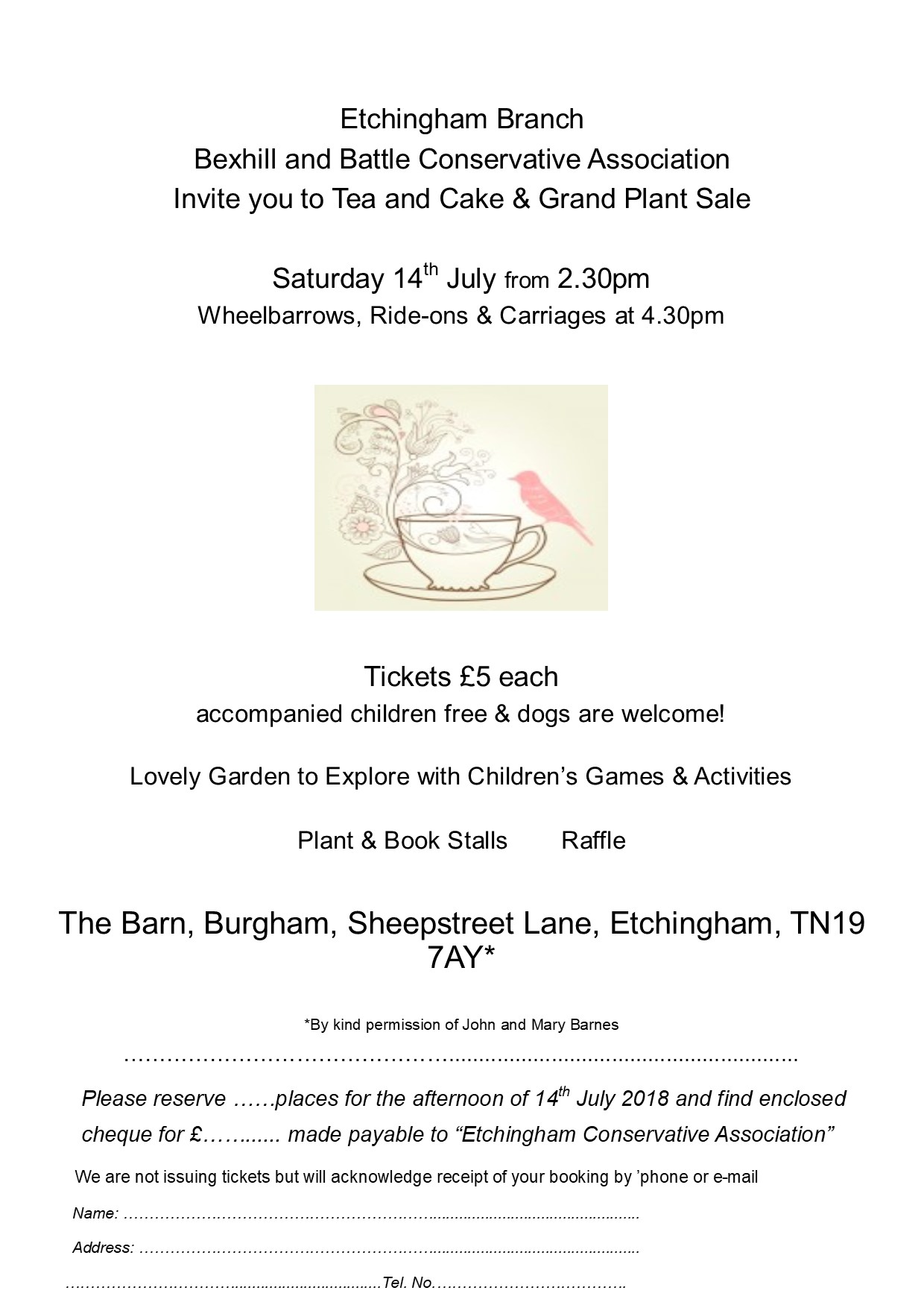 Etchingham Branch will be holding a Garden Tea Party and Plant Sale from 2.30pm on Saturday 14th July at Burgham Barn, the home of Mary and John Barnes.