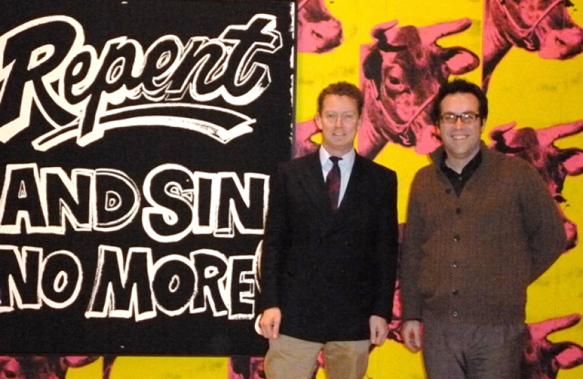 Bexhill MP, Greg Barker has congratulated the De La Warr Pavilion on the retrospective show of the works of US pop artist Andy Warhol, “Warhol Is Here”, their most successful exhibition to date, when he met Acting Director Stewart Drew last week.
