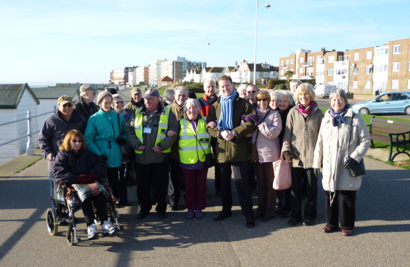Bexhill and Battle MP, Greg Barker joined walk leaders Cllr Paul Lendon, Sandra Melvin, Vernon Cornford , Frank Upland and around 30 other walkers for a stroll along East Parade last Friday morning and took the opportunity to wish them all a Happy New Year.