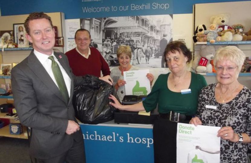 Speaking in Bexhill, Greg said “Charity shops are a great source of income for local and national charities. In Bexhill and Battle we have a number of charity shops which are always busy and it is a real credit to our local community that there are so many volunteers willing to give up their time to work in the shops. However these shops rely entirely on donations so if you are having a spring clean and clearing out cupboards and wardrobes please think about taking your unwanted items along to a local charity shop.”