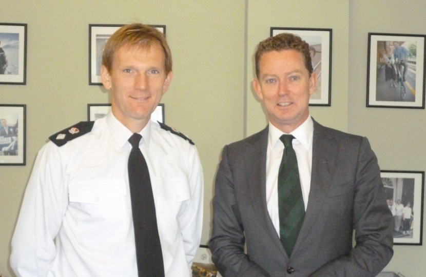 18.11.13 for immediate release: Local MP, Greg Barker, paid tribute to community-minded local people who have helped keep crime rates low in Bexhill and Battle when he met up in Bexhill with Chief Superintendent Neil Honnor, East Sussex Divisional Commander, to discuss law and order issues in the constituency. Greg heard that initiatives such as Neighbourhood Watch and Community Speedwatch have made East Sussex a safer place to live.