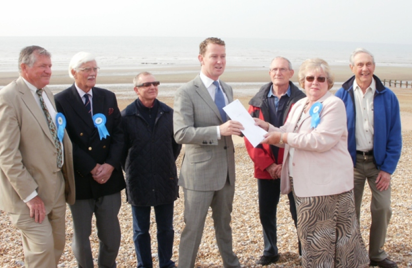 Local MP Greg Barker visited the beach at Herbrand Walk in Bexhill last Friday morning with Rother District Councillor Joanne Gadd to listen to the concerns of local residents regarding new proposals to allow the launching of jet skis from this beach.