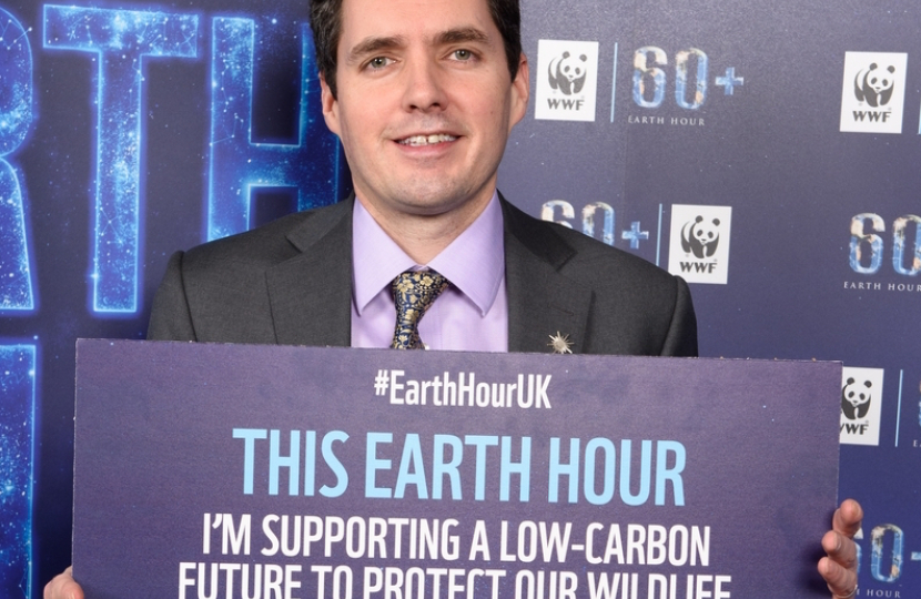 16.03.2016 For immediate release Bexhill and Battle MP, Huw Merriman, has signed up to support this year’s Earth Hour by making a special pledge to help protect the planet. Huw was one of many joining WWF in London this week to show they care about the future of our planet, ahead of the global lights out event, due to take place on Saturday 19 March at 8:30pm.