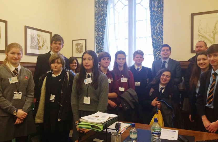 One of the top five issues that young people highlighted in the Big Vote was the need for improving mental health awareness and support. Having arrived at the meeting following his attendance at the delivery launch of the Mental Health Taskforce in Parliament, Member of Parliament for Bexhill and Battle, Huw Merriman, was able to explain to his students what the future of mental health provision could look like. After the event, Huw chatted to students and teachers from St Richard’s Catholic College, Frewen College, Robertsbridge Community College, Heathfield Community College, Bexhill Academy and Claverham Community College and invited them to join him in his office so they could see how their MP worked when not debating in the chamber.