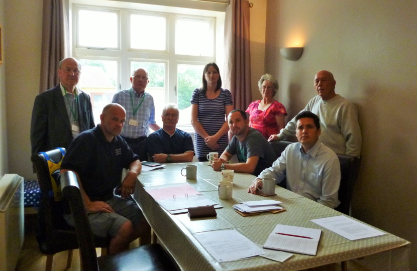 12.08.2015 for immediate release: Huw Merriman, MP for Bexhill and Battle, visited worried residents of Hill Top Drive in Rye Foreign yesterday to hear their concerns about Orbit Housing Association’s plans to sell their homes in the Grade II listed building.